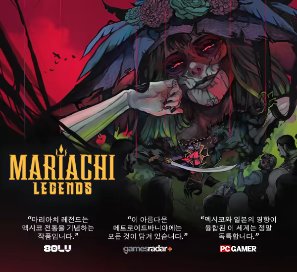 『마리아치 레전드』는 멕시코를 배경으로 한 잔혹하고 픽셀 아트 스타일의 전투 중심 메트로이드바니아 게임입니다. 플레이어는 파블로 크루즈라는 탐정을 조종하게 되며, 그는 죽음 그 자체와 거래를 맺습니다. 그녀는 파블로에게 강력한 ‘라 솜브라(La Sombra)’로 변신할 수 있는 능력을 부여하여 고향을 침범하는 범죄자들에게 맞설 수 있게 했습니다. 그 대가로, 파블로는 마드레 카트리나에게 그녀의 손아귀에서 벗어난 단 한 사람—그녀의 힘을 거부하고 불멸이 된 남자—을 찾아 데려오겠다고 맹세했습니다.