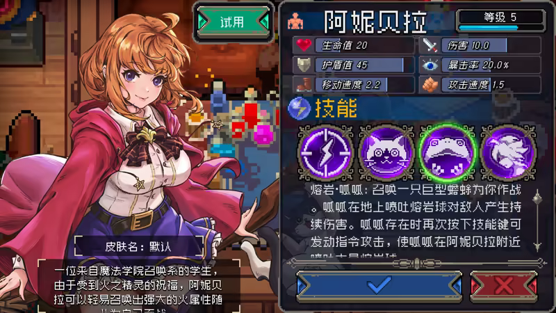 一位来自魔法学院召唤系的学生,由于受到火之精灵的祝福,阿妮贝拉可以轻易召唤出强大的火属性随从为自己而战。