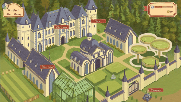 Начиная с сегодняшнего дня, вы зачислены в Академию Магии Уимел! *Академия Уимел* — это известная школа магии, где студентам предлагается широкий выбор предметов. Вы также встретите других студентов, с которыми сможете развивать дружеские отношения, а, возможно, и романтические. Ваша единственная цель — вести насыщенную студенческую жизнь и получить плодотворное образование в течение шести лет обучения. Вам придется уделять время, чтобы заработать немного карманных денег, параллельно занимаясь учебой, хобби и дружбой.