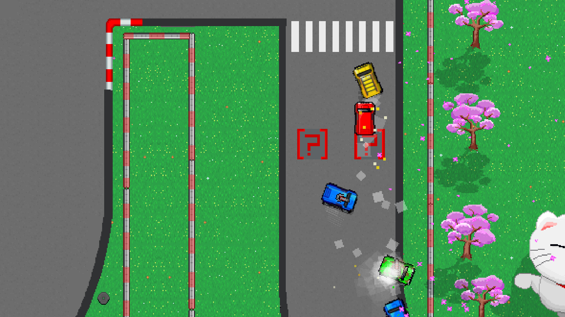 The game currently has 3 game modes which are, standard race, Power Race which adds missiles, mines, speed boosts and oil slicks and Timebomb mode which is a checkpoint dash done with a bomb attached to your car.