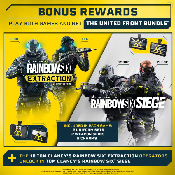 • Tom Clancy’s Rainbow Six® Siege players get four exclusive Epic gearsets across both games and instantly unlock 18 Tom Clancy’s Rainbow Six Extraction operators in Tom Clancy’s Rainbow Six Siege.