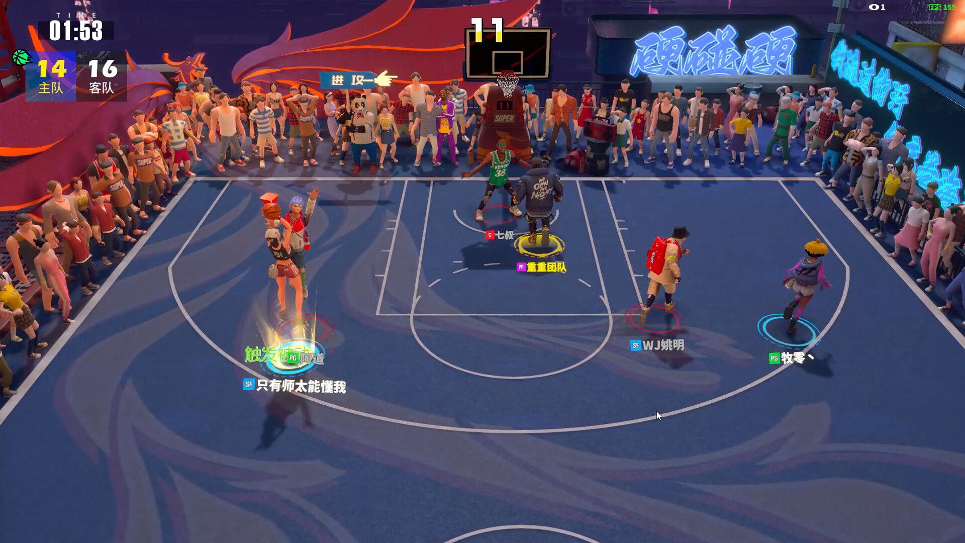 我们尝试在游戏中加入了丰富中国元素,演绎全新的“江湖味”的中式街头潮流。未来在游戏中,或许能听着“火锅儿好吃”的重庆吆喝,在极具中式街头味道的球场里打一场“功夫篮球”。