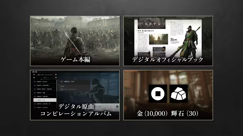 『真・三國無双 ORIGINS Digital Deluxe』はゲーム本編に以下コンテンツが付属したお得なセットです。