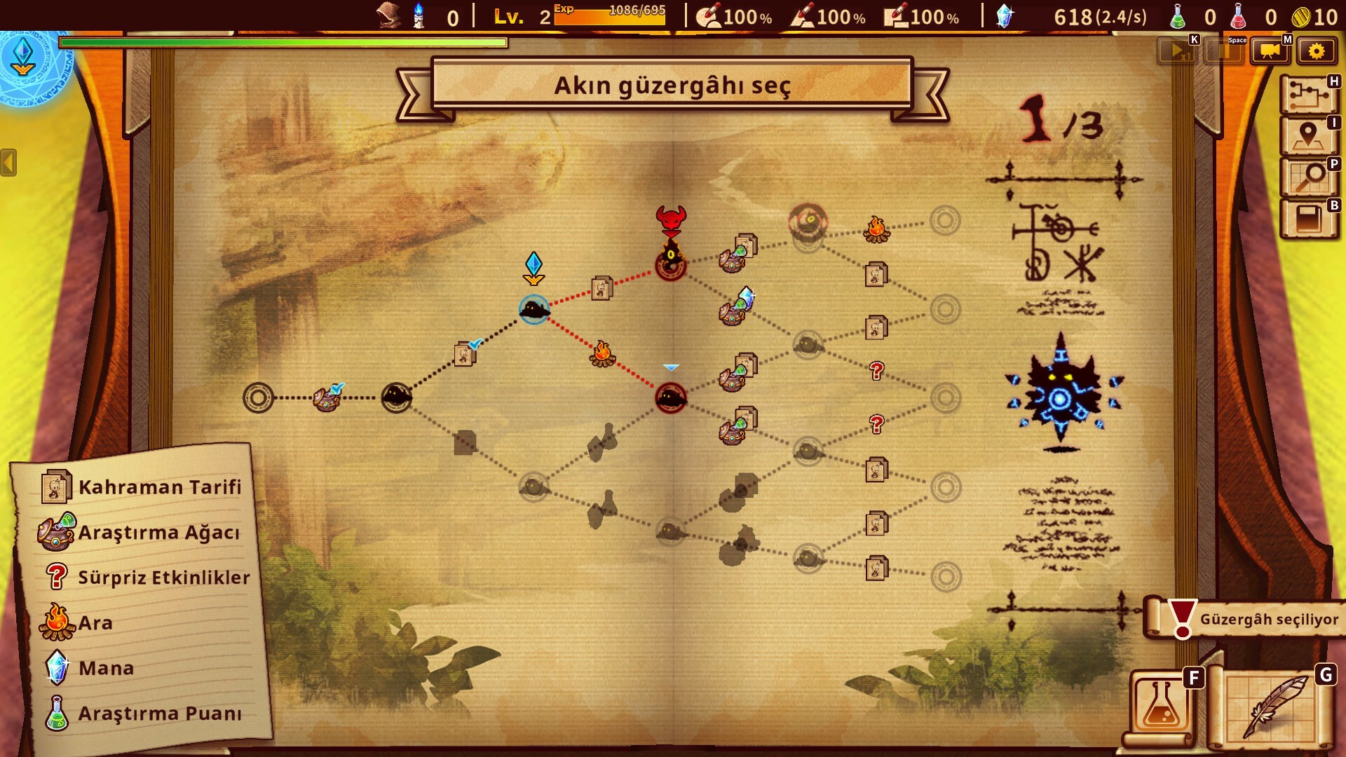 Kahramanlarınızı farklı kombinasyonlarla bir araya getirmek için parşömendeki ana şekilleri taşıyın. Üçgenlerle daireler askerleri oluştururken, daireler ve kareler sprite'ları oluşturur. Askerlere kalkan vermek için kareler ekleyin. Belki de askerleri bir araya getirerek daha güçlü kahramanlar yaratmak mümkündür...