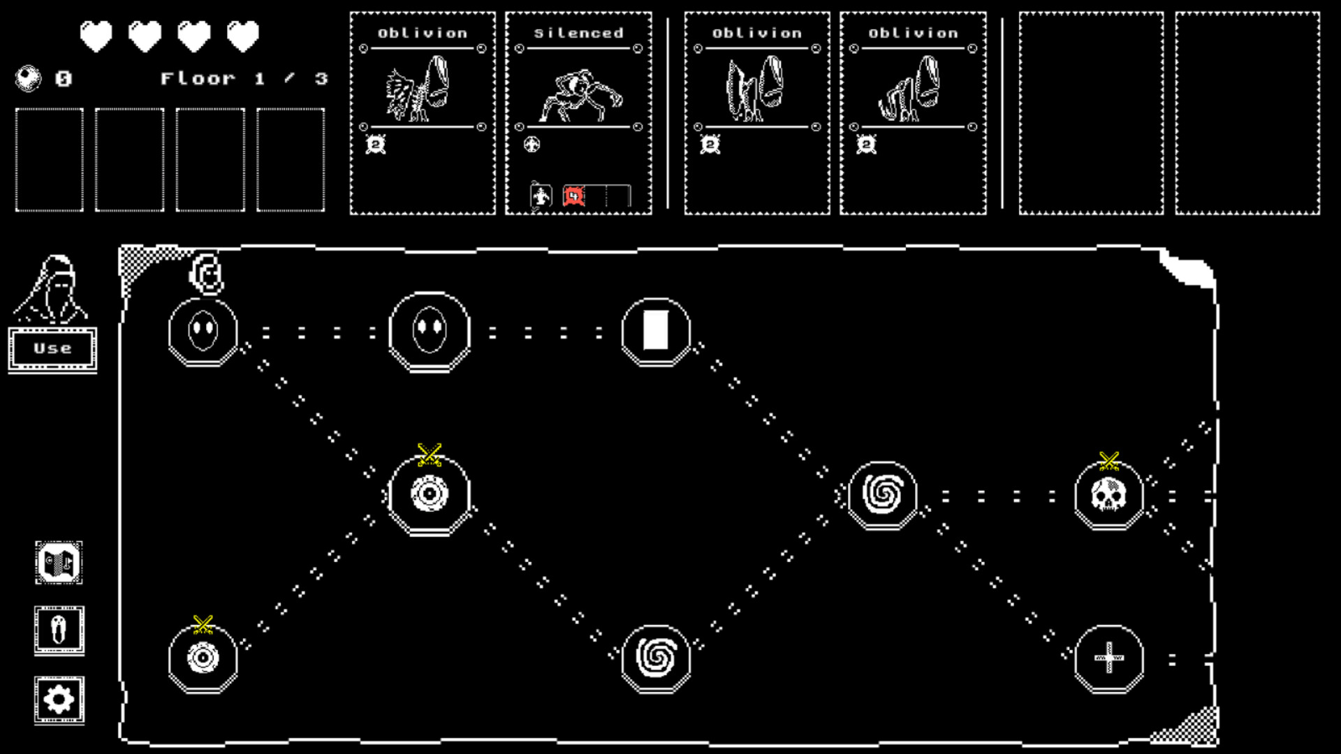 • A roguelite gameplay with metaprogression, seeded runs and 10 difficulty levels