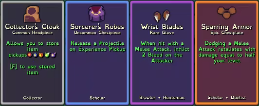 RuneLight has dozens of powerful and game changing equipment pieces to collect. Swap out, mix, and match equipment to make a wide variety of builds and synergies.