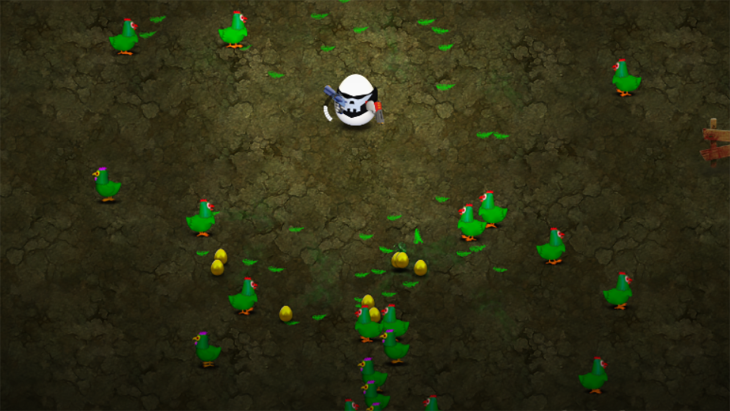 In a world gone mad... one egg stands alone against the fowl horde! Can your dual-wielding ovum outlaw survive against an endless army of zombie chickens?