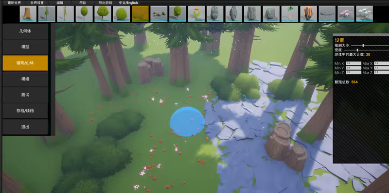 编辑器拥有边界快速的笔刷 进行植物搭建 山地搭建