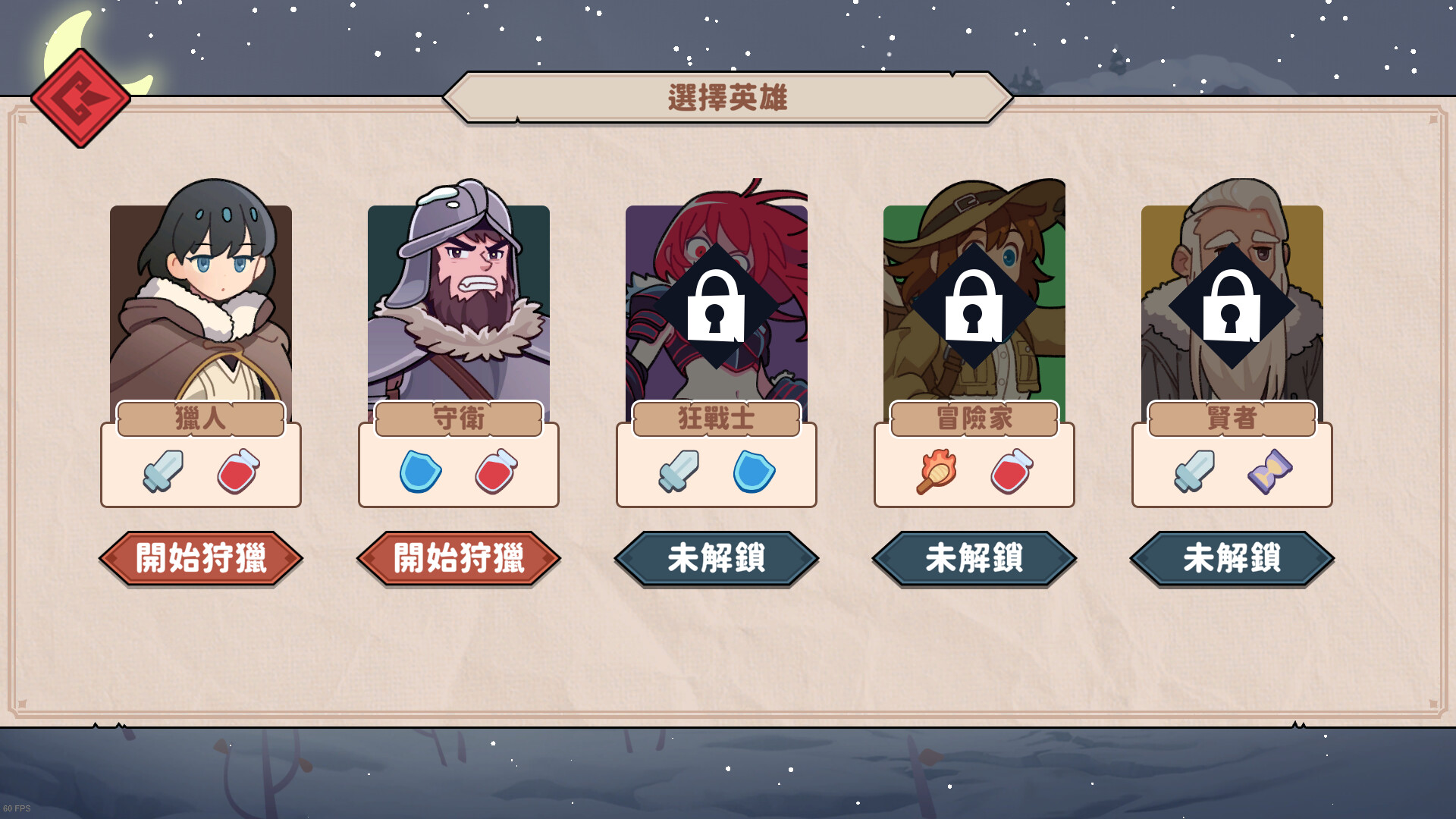 5名英雄可供選擇。