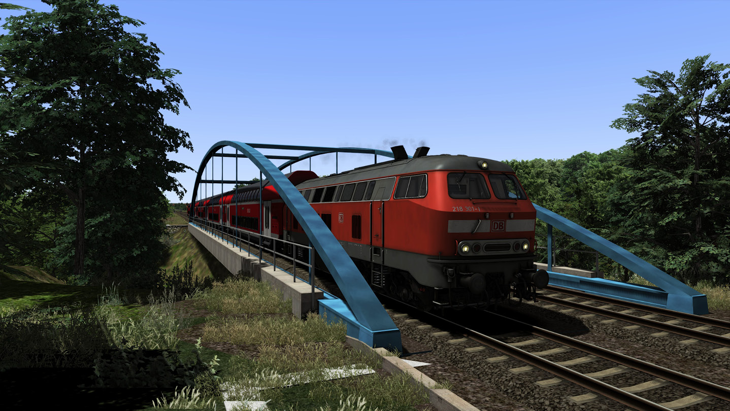 The DB BR 218 'V 164' Locomotive Loco Add-On includes 3 Standard scenarios for the Pegnitztalbahn: Nürnberg - Bayreuth route.