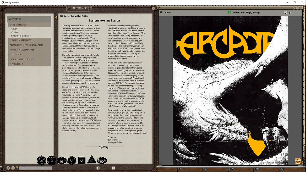 Welcome to ARCADIA! Inspired by old-school tabletop magazines, ARCADIA is MCDM's digital magazine for 5th edition GMs and players. We hope you like it!