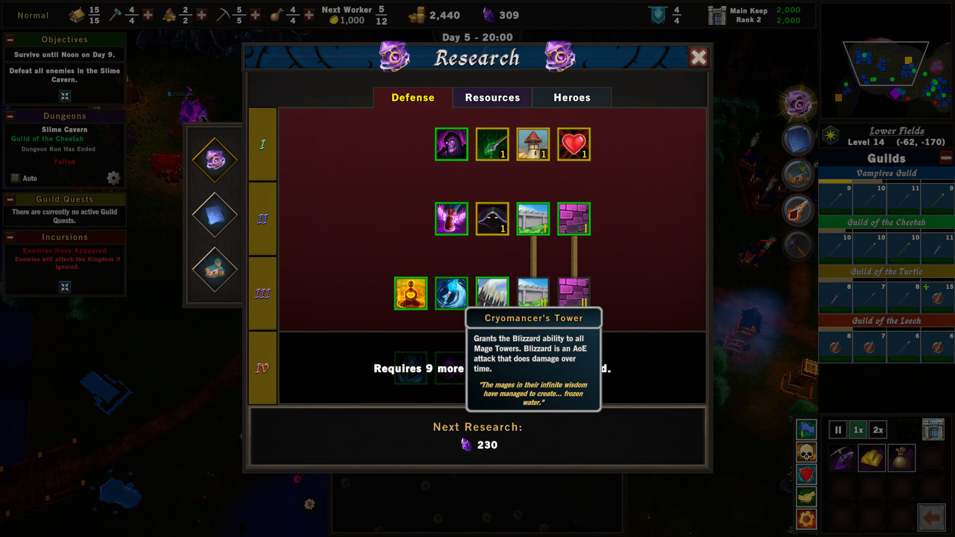 • Research upgrades for your kingdom. The research system offers a diverse range of possible upgrades to improve your kingdom's economy, defenses, stats of your units, and more. These upgrades provide valuable utility to help your kingdom thrive, and can offer different playstyles depending on the choices you make. Researching upgrades requires mana, but the benefits can be substantial and are crucial to your kingdom's long-term success. Choose your upgrades wisely to shape the strengths of your kingdom and ensure its prosperity.