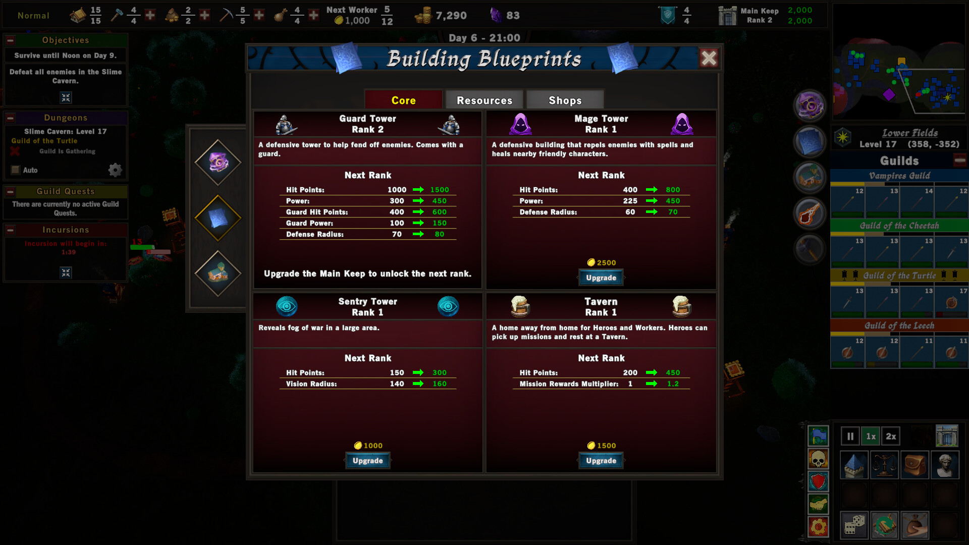 • Build your kingdom. You can defend an area with a Guard Tower, increase your gold with a Marketplace, and provide new equipment to heroes with a Blacksmith. Many buildings can be built and upgraded to gain various benefits as you build up your power.