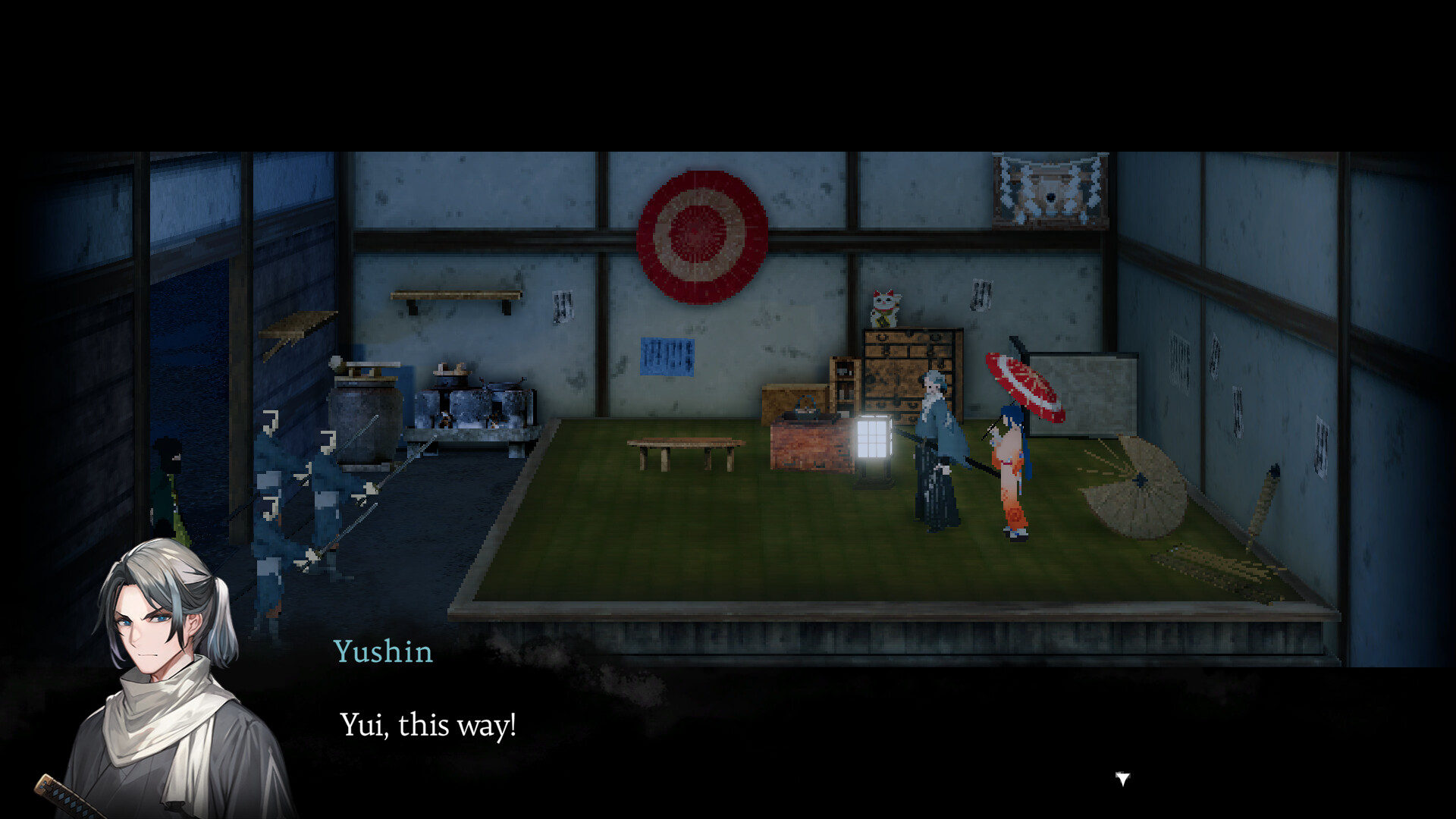 Inclement Intrigue: This human drama plays out against the rain-soaked backdrop of mid 19th century Japan, rendered in an evocative pixel style. In the sombre world of AMEDAMA, beauty and darkness are two sides of the same coin.