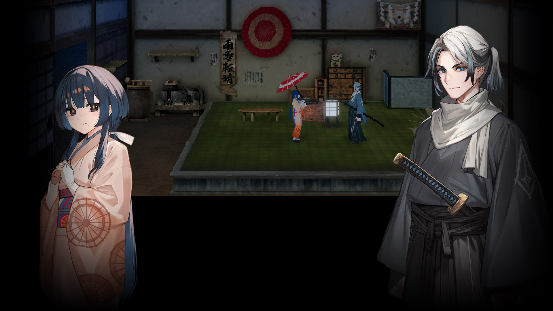 Dit menselijke drama speelt zich af tegen de regenachtige achtergrond van het Japan van het midden van de 19e eeuw, weergegeven in een suggestieve pixelstijl. In de sombere wereld van AMEDAMA zijn schoonheid en duisternis twee kanten van dezelfde medaille.