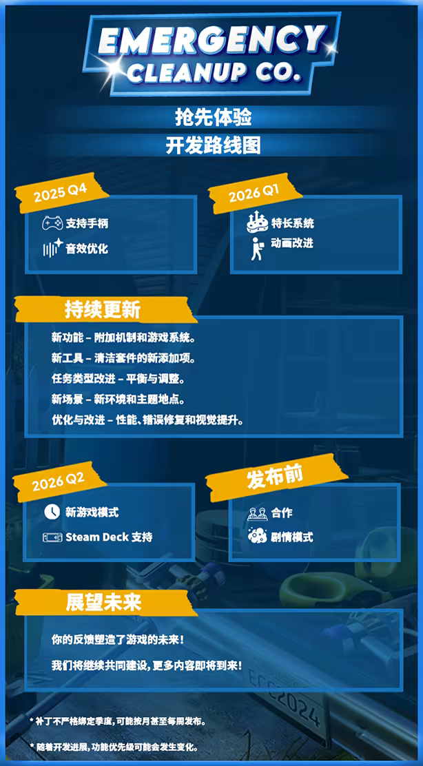 “我们计划通过Discord和Steam社区收集玩家的反馈意见。报告游戏中的错误并分享他们希望开发的功能将有助于我们改进游戏质量。此外,我们将定期发布更新和开发者博客,与社区互动,分享游戏开发进展。”