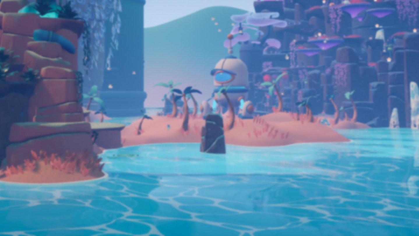 Pogglewash is a casual 3rd person platformer and shooter. You play as DIPPER, a robot who’s sent to an alien planet named Pogglerock, home to the Pogglewonks, Gloons, and Wubaroos. Unfortunately, the planet is completely covered in goop, but the Pogglewonks don’t have the hands to clean it with. That’s why DIPPER’s mission is to clean it up with his water gun! DIPPER cleans his way through and restores this beautiful alien landscape, helping and being helped by the Pogglewonks in turn, and receiving shiny star-shaped crystals for his efforts. Just be careful around those idyllic shores! Robots aren’t very good at swimming, after all.