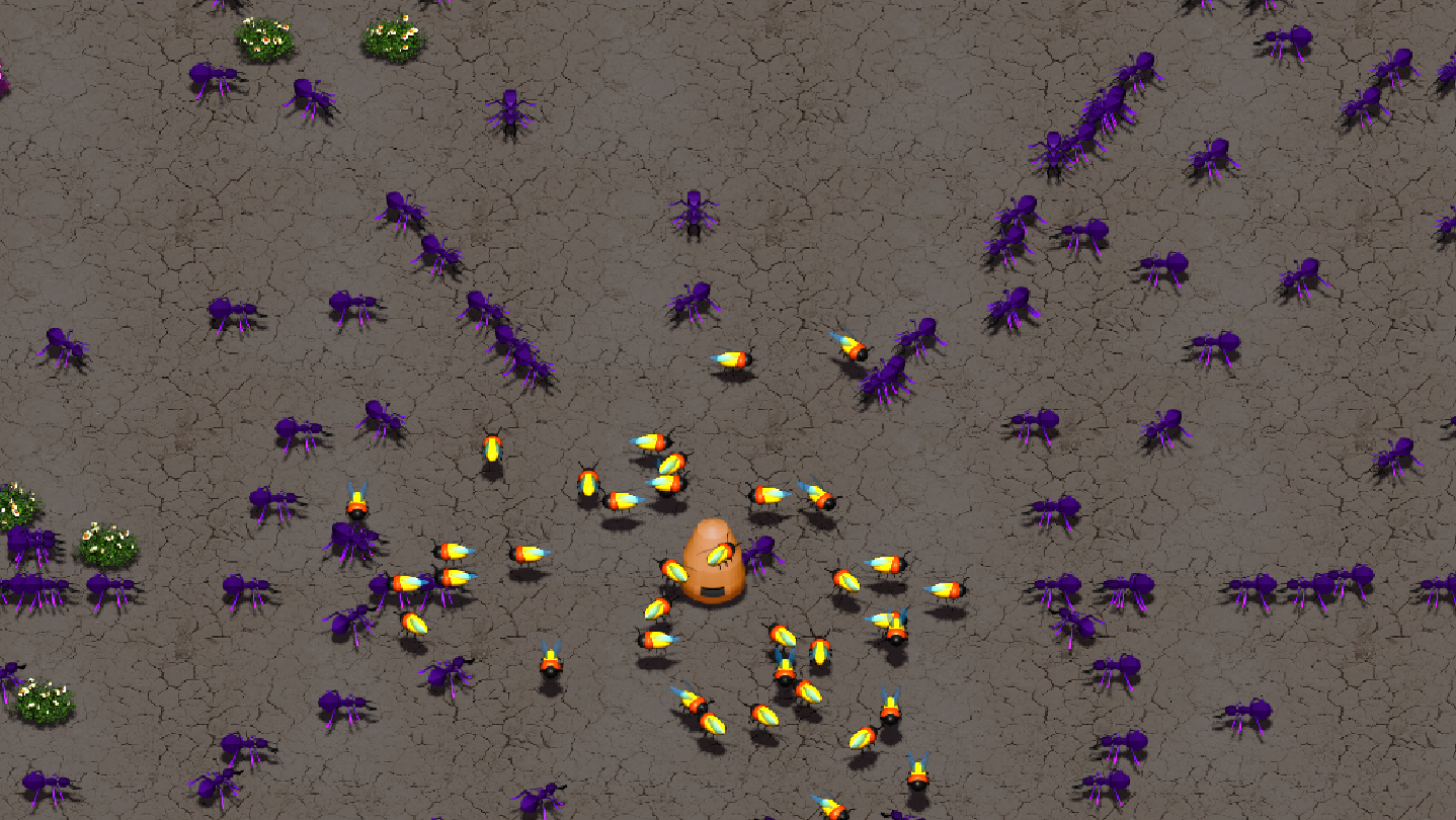 Flowers are your main tools to generate more pollen or use them to boost the stats of your bees' stats: speed, strength, health, damage, and so on: everything you need to secure survival and victory.