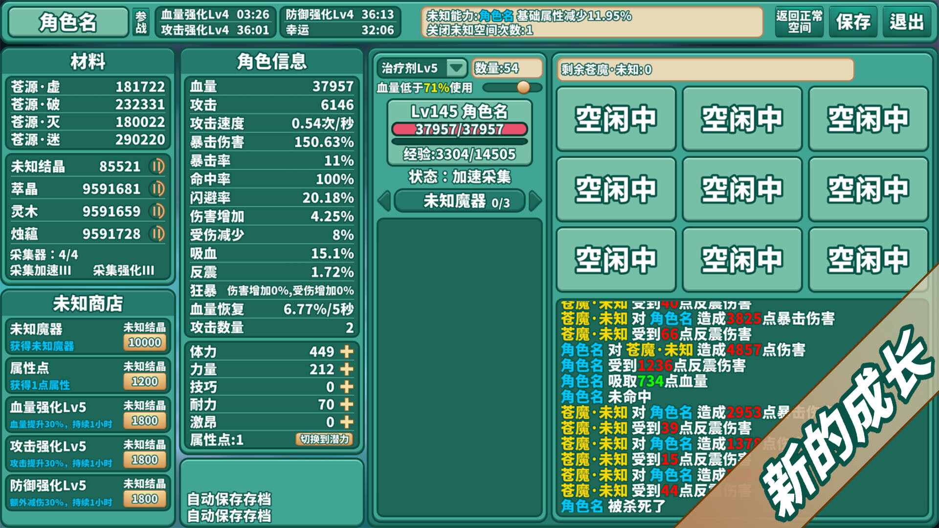 The extra material resources produced by placing it for a long time can also be exchanged for a permanent increase in attributes.