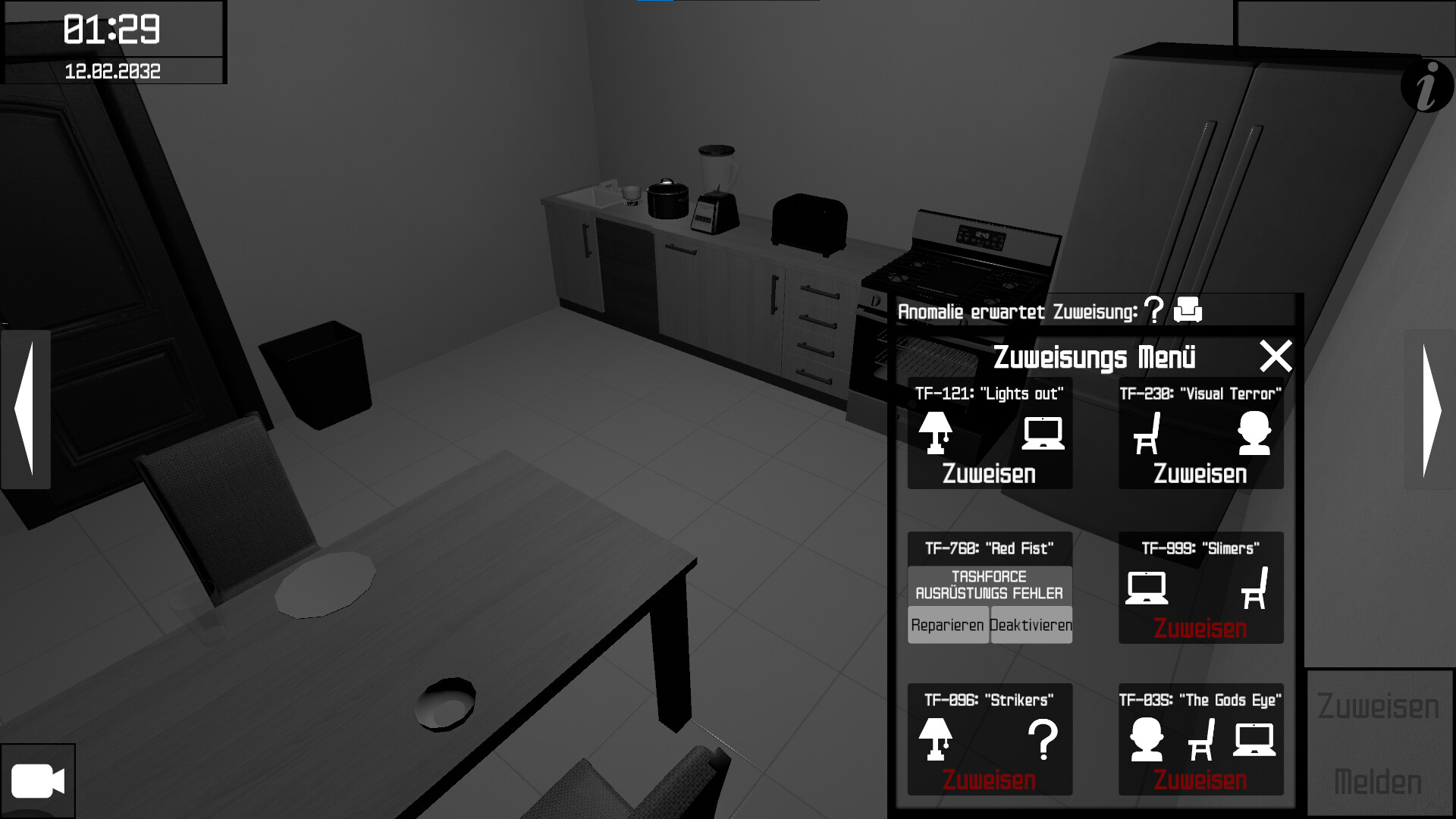 Wenn Sie eine Anomalie gefunden haben, müssen Sie diese melden. Wenn Sie eine Anomalie gemeldet haben, können Sie ihr eine Spezialeinheit zuweisen. Das wird das sein, was Sie im Spiel am häufigsten tun werden. Es gibt (4-12) Anomalietypen, die in (4-12) Räumen verstreut sind. Ihr Arbeitsort ändert sich jede Nacht. Stellen Sie immer vor eine andere Herausforderung. Hoffentlich sind Sie bereit.