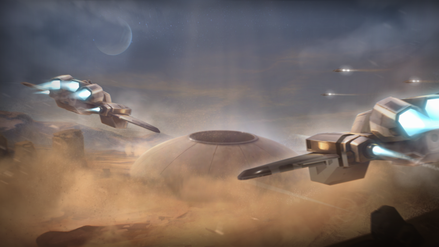 Upgrade your workshop to unlock new hangar floors and transform your run-down hangar into a fully equipped starship facility.