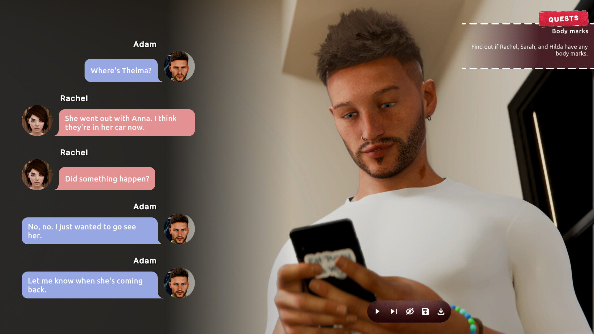 La versión completa del juego abarca 5 días de una historia intrigante — tú decides cómo avanzará la investigación y qué relaciones valen la pena. ¿Revelarás el misterio de “Dream Body” y de los extraños sueños que tienes, o seguirás con tu vida como si nada hubiera pasado?
