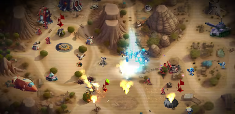 提升您的科技水平以獲得高級單位的權限!激光機器人、火箭機器人、火焰機器人和高級坦克都可以隨時為您使用,粉碎您的敵人!