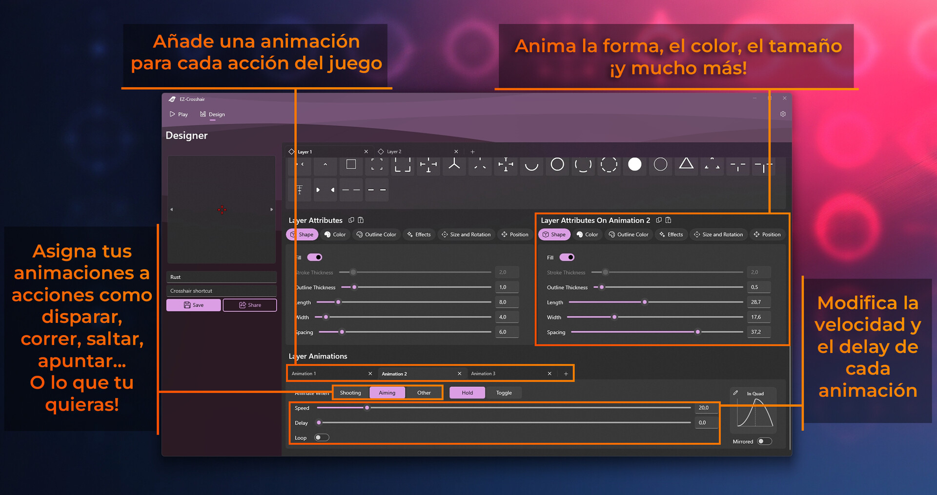• Animar el crosshair cuando quieras (al apuntar, disparar, o cualquier otra acción).