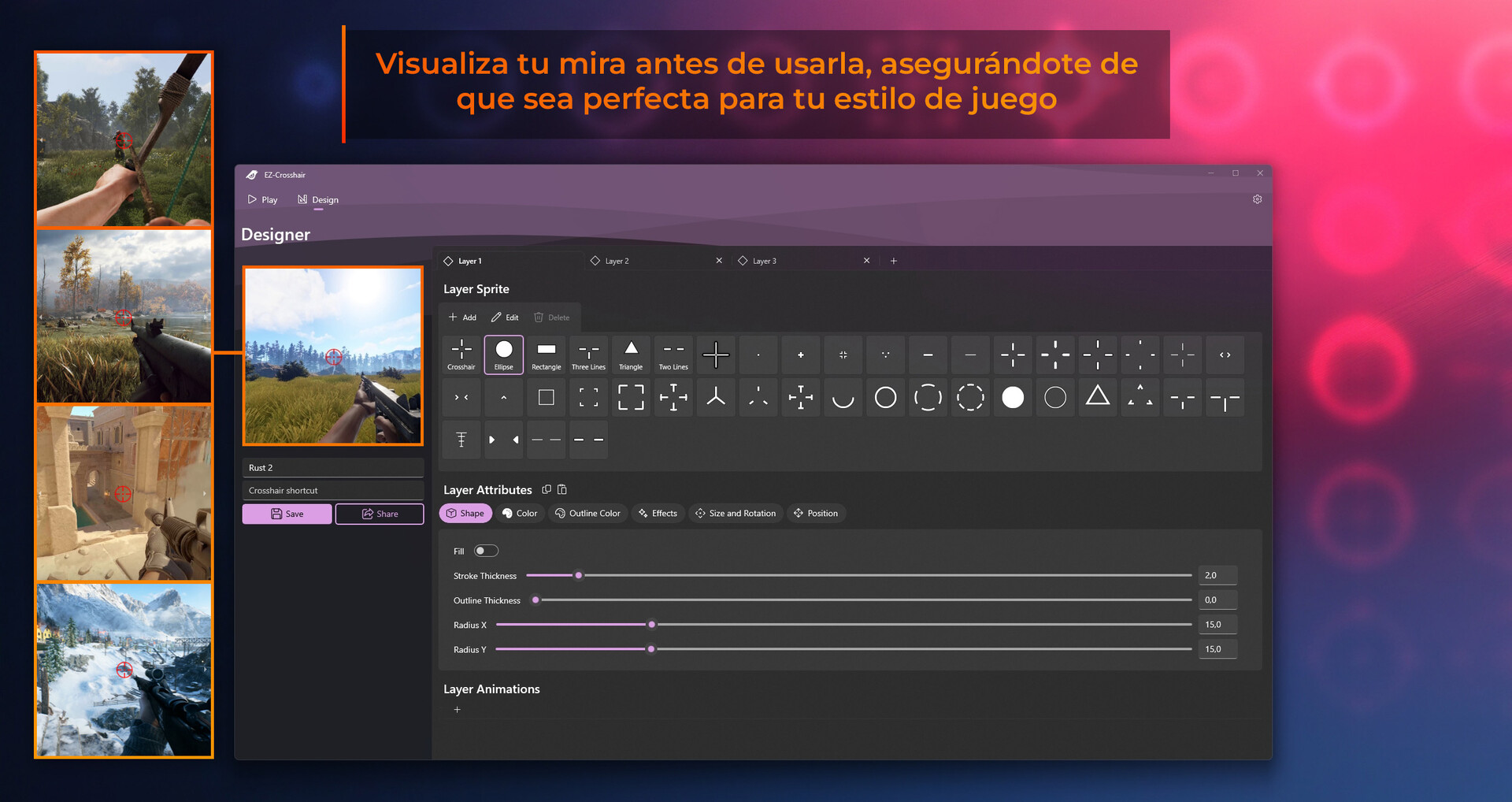 EZ-Crosshair es una aplicación fácil de usar diseñada para mejorar tu experiencia de juego. Proporciona una superposición de mira personalizable, lo que permite a los jugadores adaptar su mira según sus preferencias. Con una interfaz sencilla e intuitiva, EZ-Crosshair garantiza un entorno de juego fluido y personalizado. Eleva tu precisión y experiencia de juego con esta herramienta esencial.