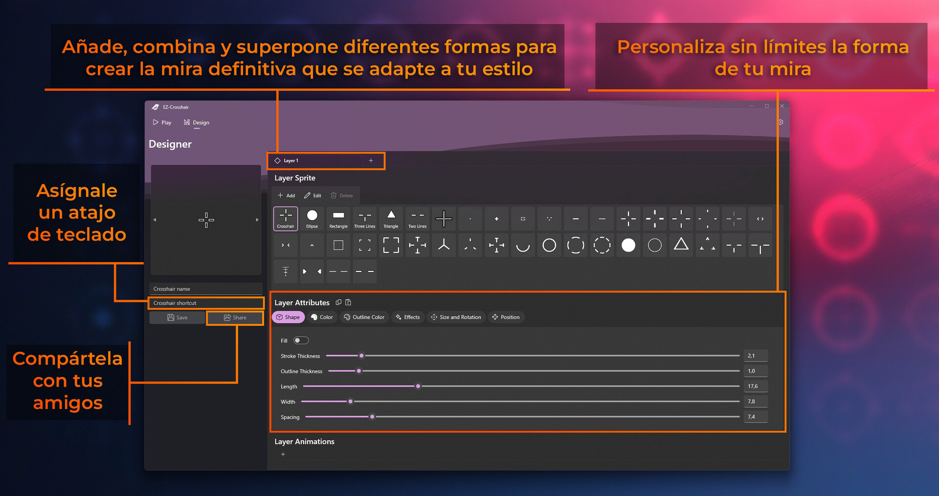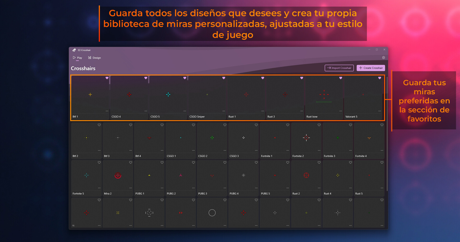 • Asignar un shortcut para activar/desactivar cada crosshair.