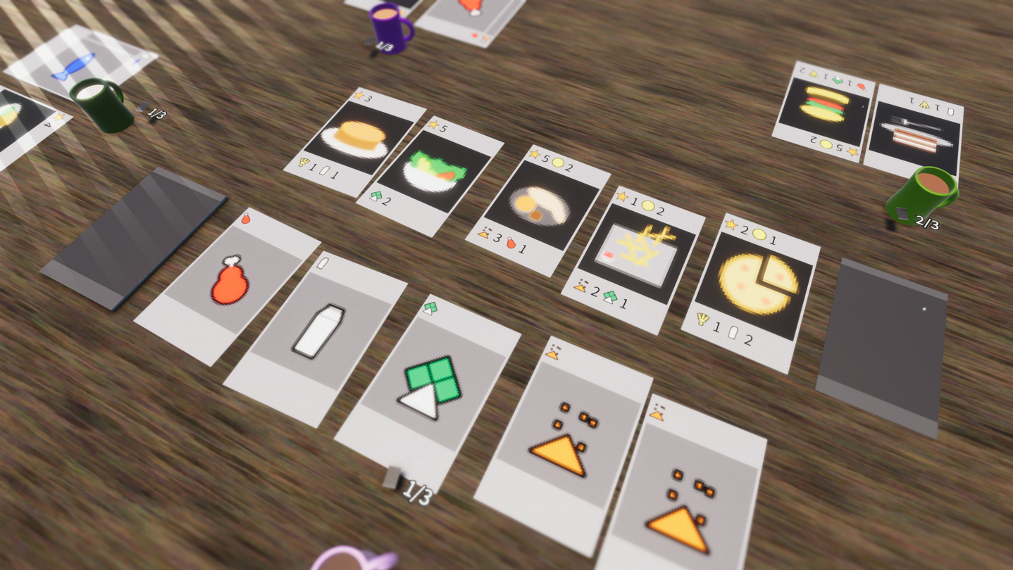 3. The game ends when one player gets 3 cooking cards.