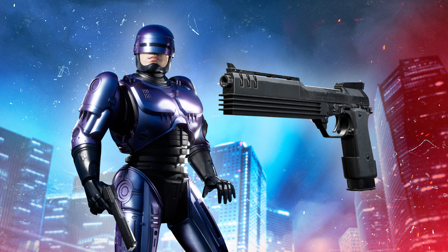 The "Vanguard" pack includes the blue version of the hero's armour from RoboCop 2 and a "Pitch Black" version of your Auto-9 weapon.