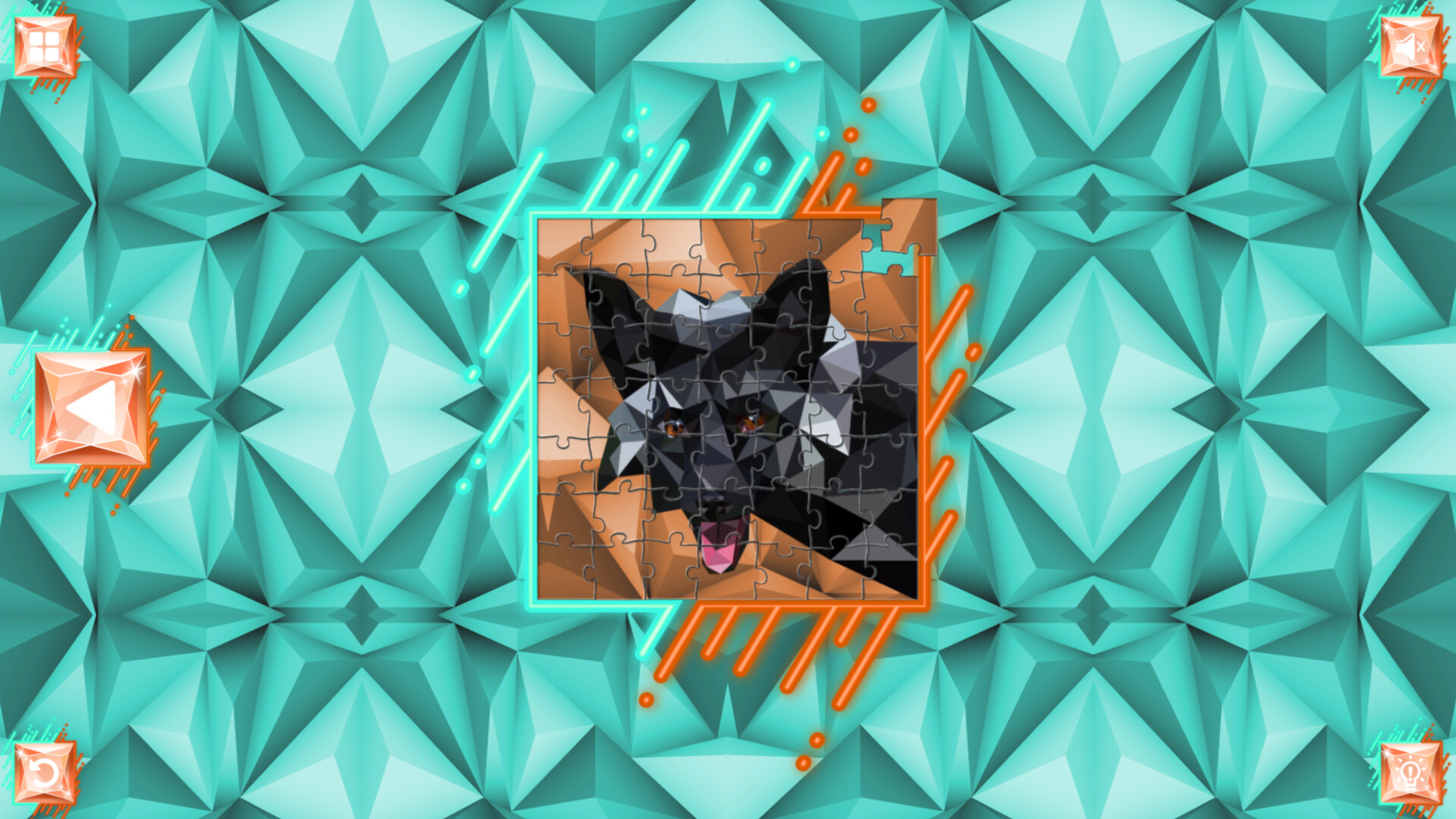 Featuring 50 hand drawn images in a polygonal style, with each puzzle piece uniquely shaped in a way no physical puzzle could be.