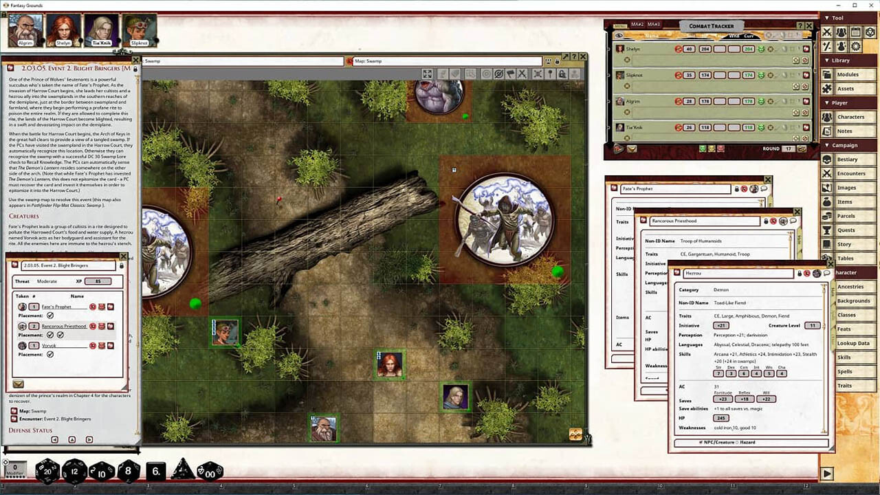 Requires: The free Fantasy Grounds virtual tabletop (VTT) software and the included Pathfinder 2.0 ruleset.