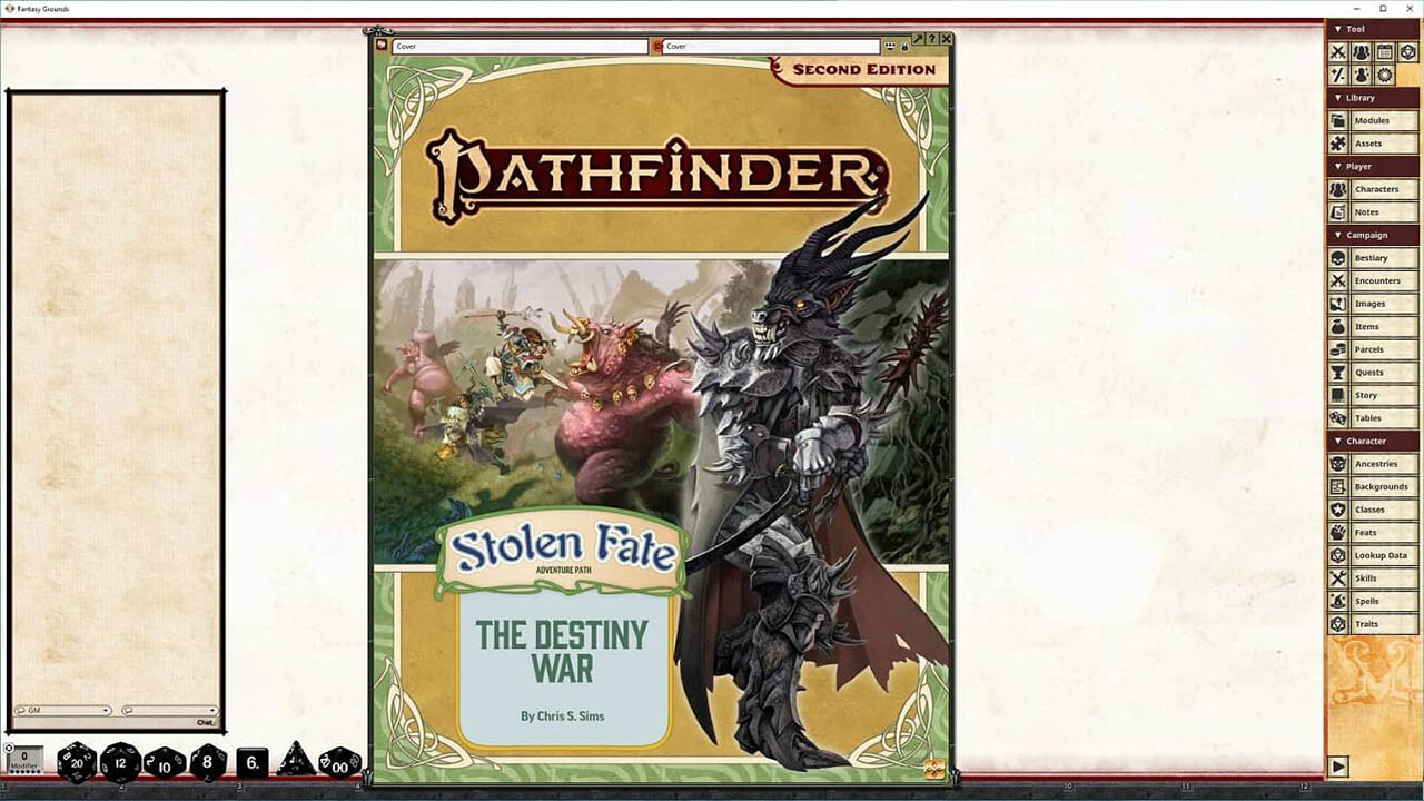 Requires: The free Fantasy Grounds virtual tabletop (VTT) software and the included Pathfinder 2.0 ruleset.