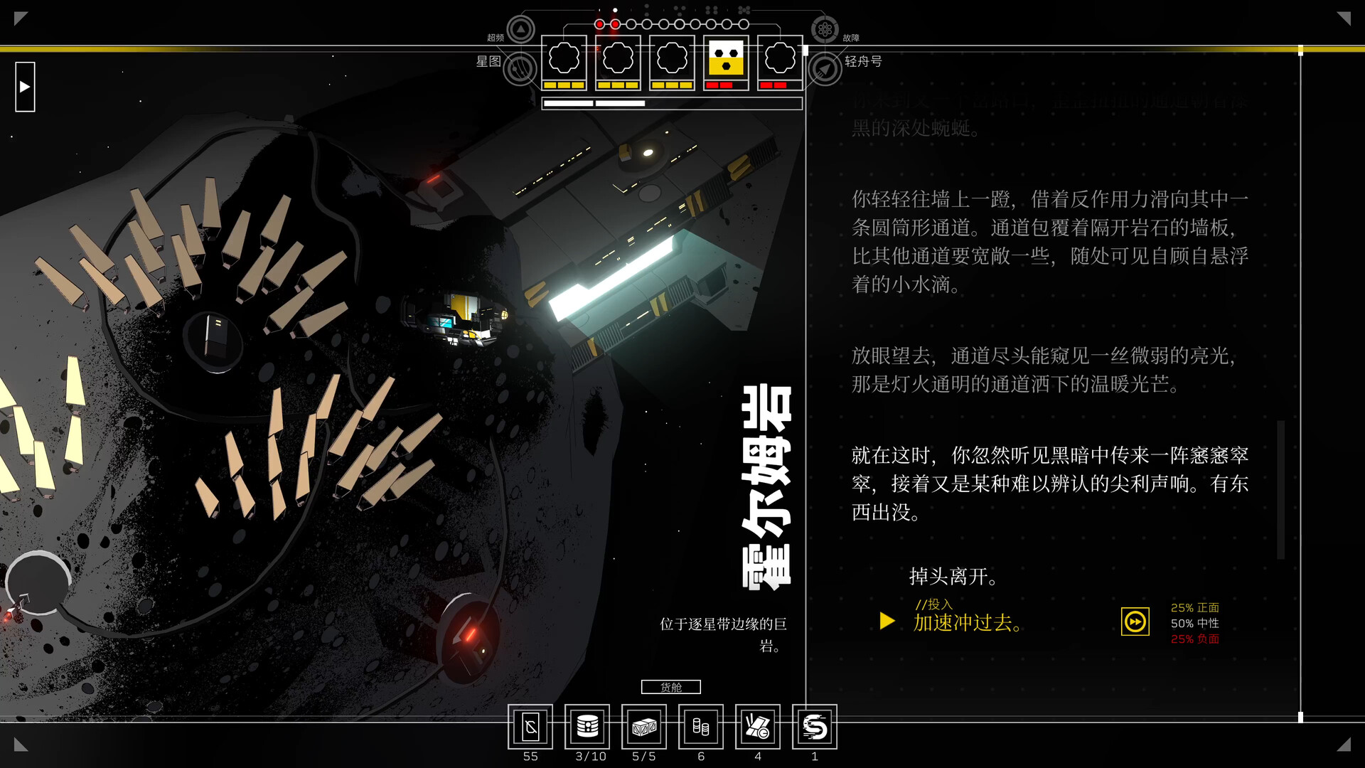 飞船是你偷来的。这艘破破烂烂的老旧拖船,早已过了自己的巅峰岁月,但你也只能凑合着用了。升级飞船,就能飞得更远,前往新地点,把飞船从陋室变成温暖的家。