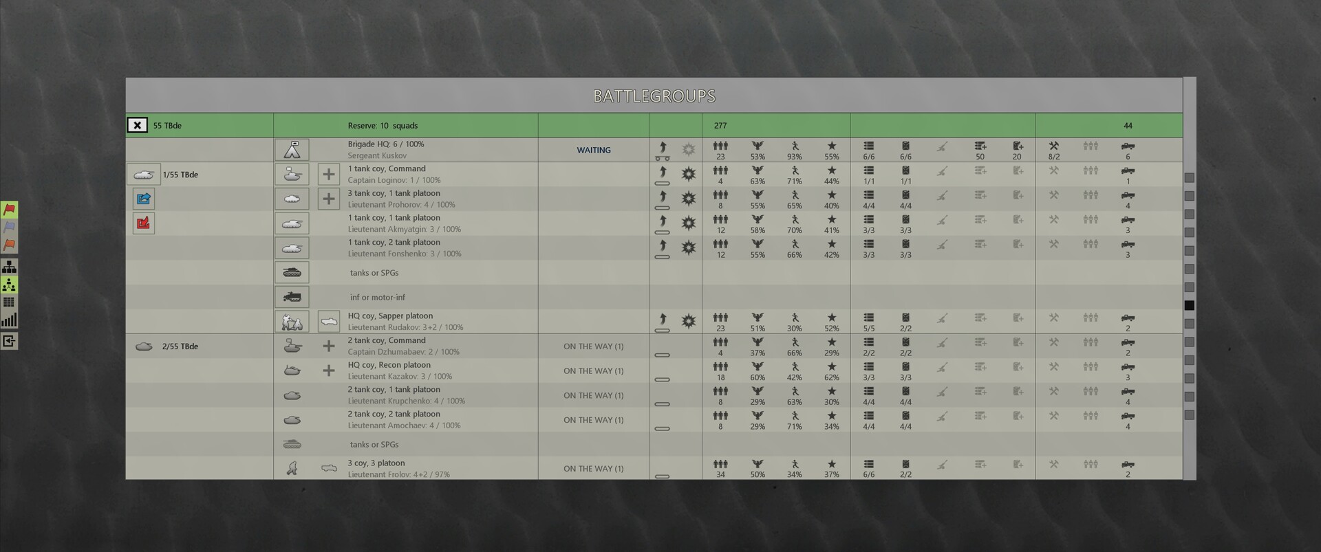 From the Soviet side, the newly formed 1TA (former 38A) is entered into the battle, consisting of: