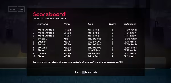 Stamp your mark on the game's Scoreboard, each route has an online scoreboard to compete with other players!