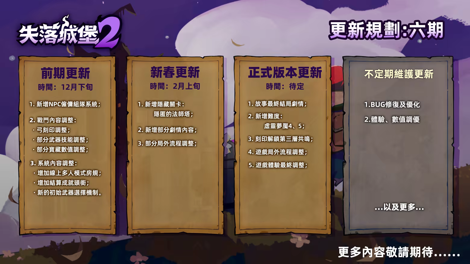 「我們將在搶先體驗版上架後的一年中,以2-3個月週期為節奏進行內容更新