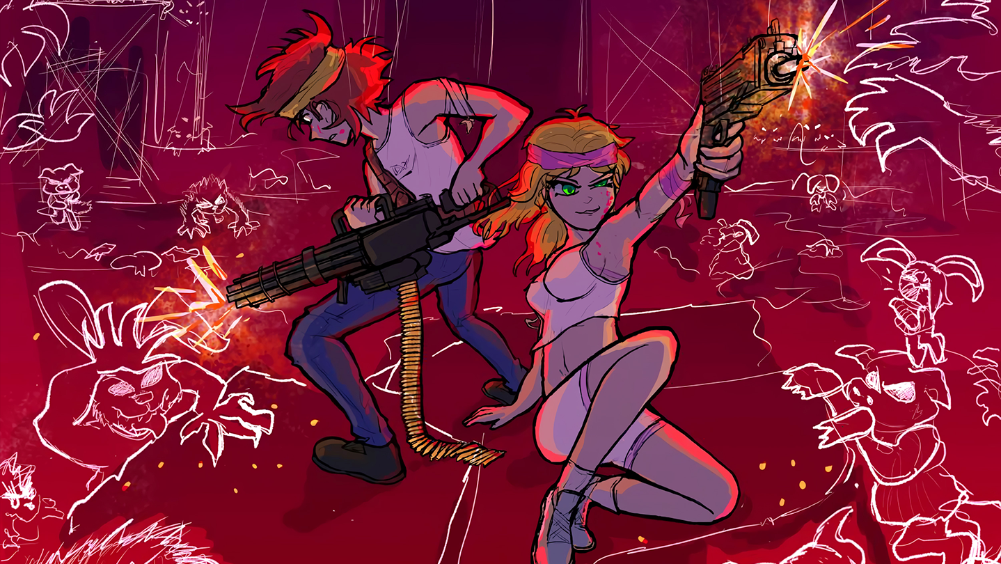 An ultra-violent platformer arcade shooter with tons of guns, metal music, juicy gameplay, dumb one-liners, dark humor, and a freak-ton of spicy ketchup. Hell yeah.