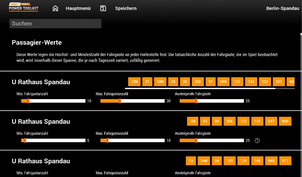 Mit dem Haltestellen-Editor kann man jede Haltestelle in einer OMSI-Map ganz nach den eigenen Vorstellungen anpassen. Definieren Sie Minimum- und Maximum-Werte für ein- und aussteigende Passagiere mit einfachen Schiebereglern. Gestalten Sie das Fahrgastaufkommen an den Haltestellen, um eine realistische und dynamische Umgebung zu schaffen.