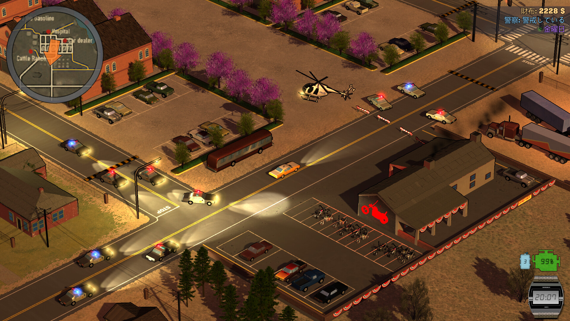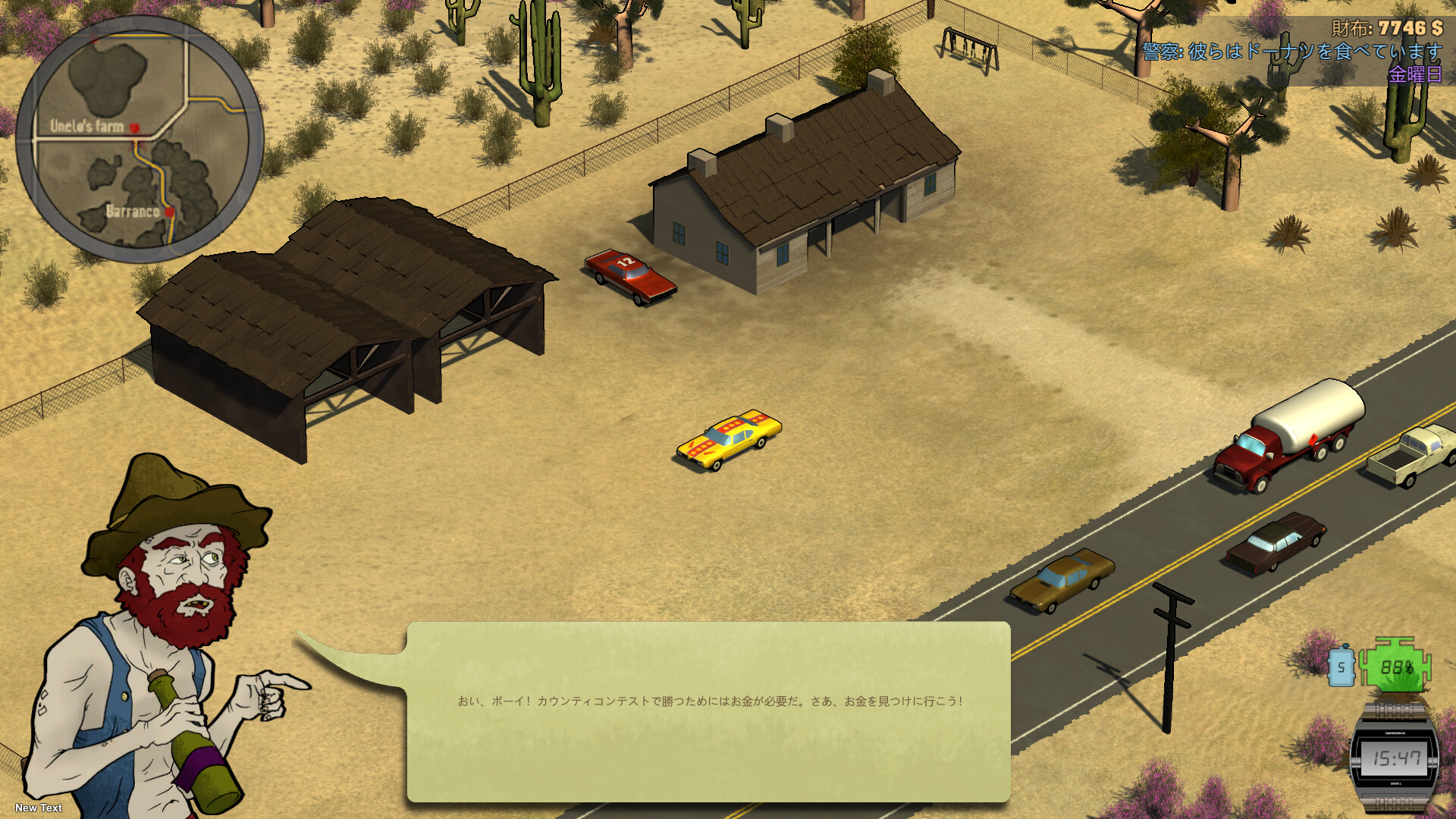 Saddle Up and Drive は無謀なアイソメトリックドライビングゲームです。密輸、輸送、公式レースや非公式レースに参加し、資金を賢く管理し、再び密輸して借金まみれの叔父さんの農場を救うのですが…警察に気をつけて!