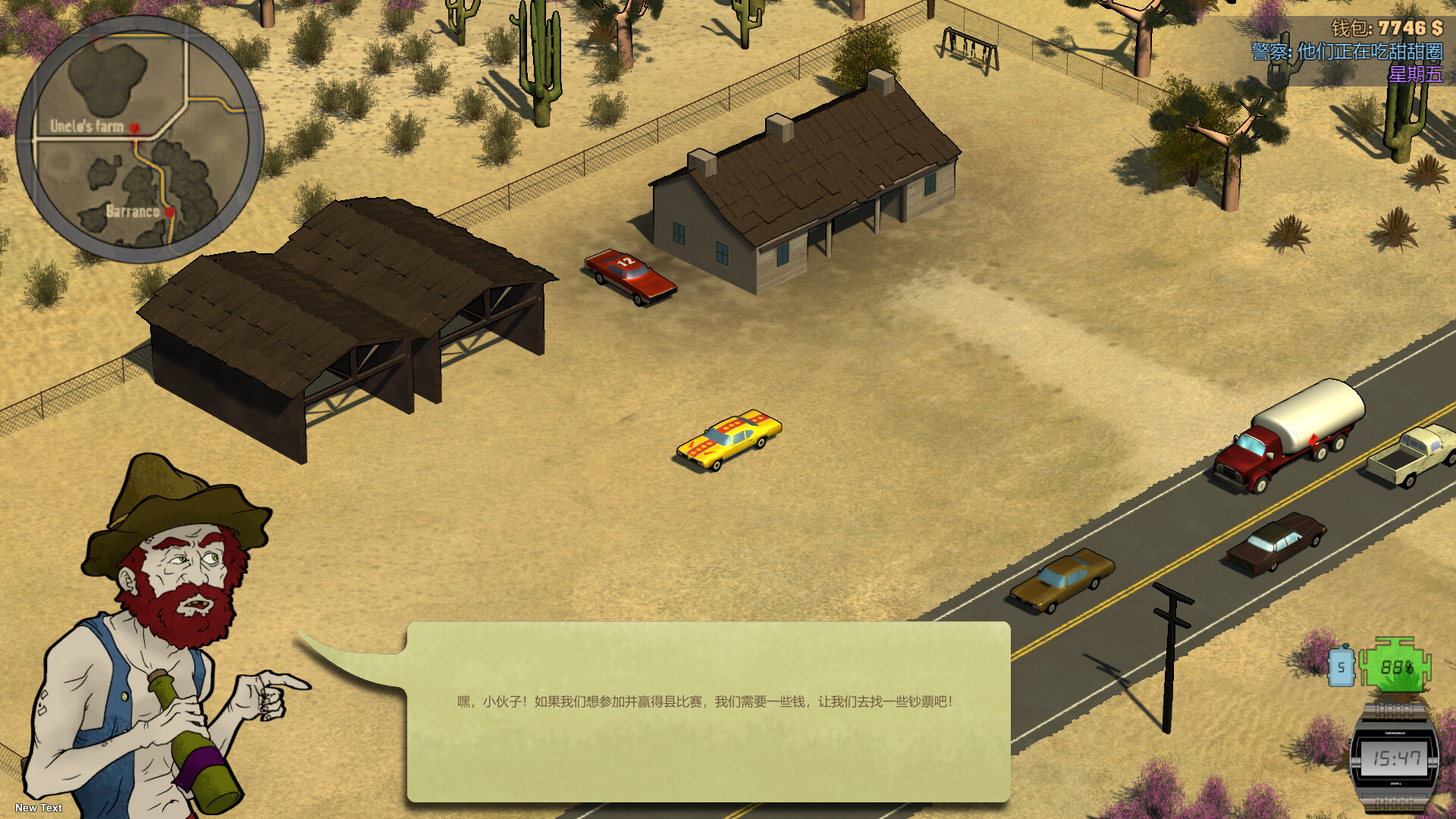 Saddle Up and Drive 是一个大胆的等距驾驶游戏。走私、运输、参加官方和地下赛车,明智地管理你的财务,再次走私以拯救你负债累累的叔叔的农场,但是……小心警察!
