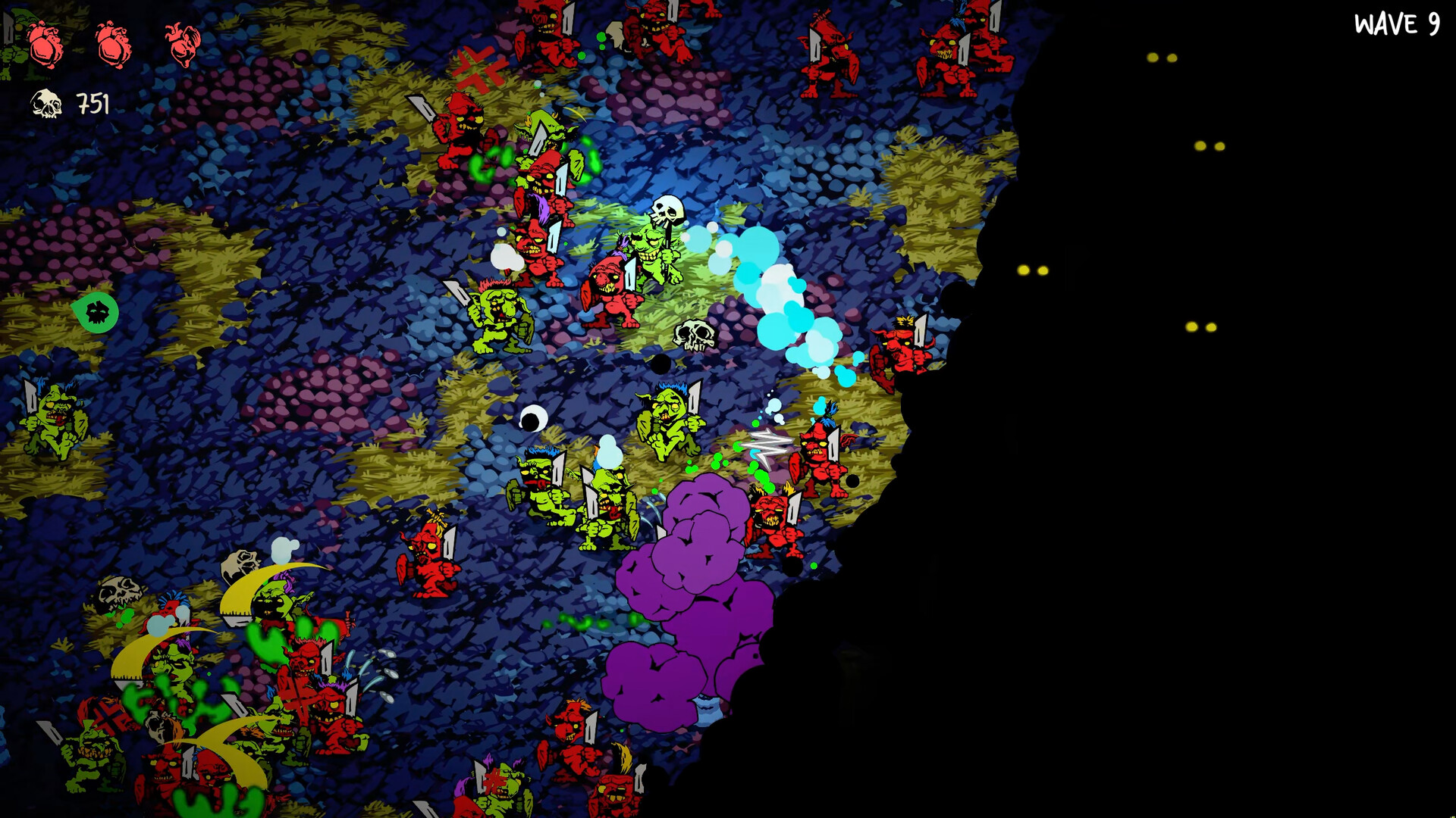 GOBLINS NEVER DIE is a roguelite horde-battler with simple controls, inspired by the likes of Vampire Survivors and Pikmin.