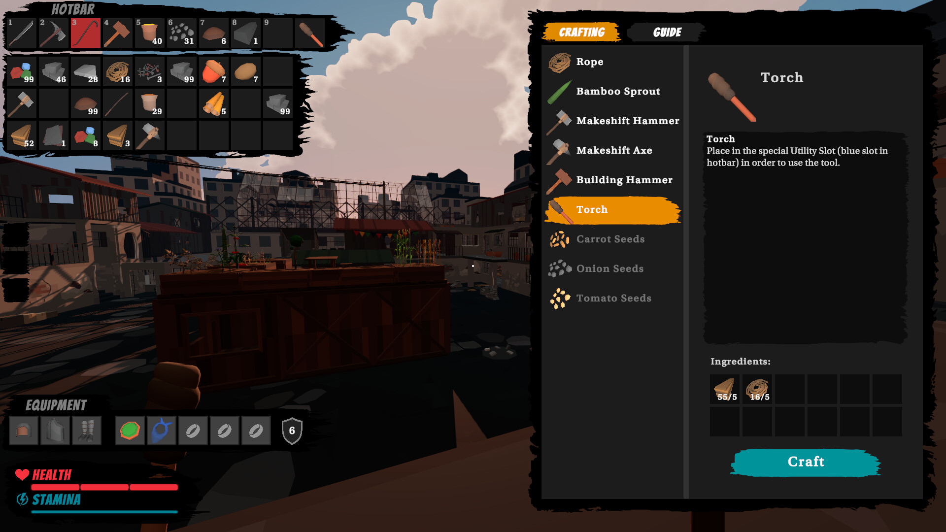 Gather materials from your environment to craft essential gear, tools, and items. Upgrade your workstations and unlock advanced crafting recipes as you progress. Everything you need to survive can be crafted if you’re resourceful enough.