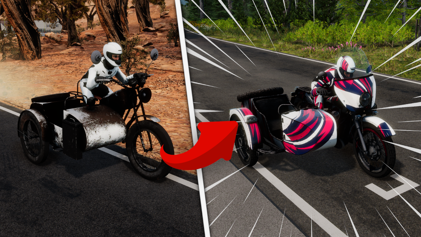 Ved hjælp af et enkelt, men rigt tilpasningssystem kan du tilpasse dit køretøj og din rytter, så meget du vil. For eksempel kan du male dine motorcykler med en hvilken som helst kombination af farver eller bruge et af de tilgængelige mønstre til at tilpasse dem!