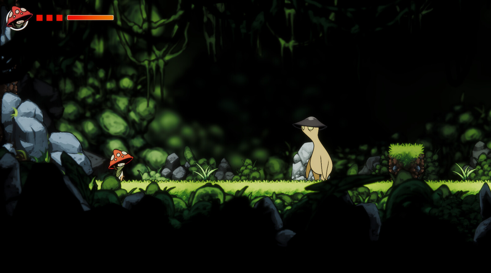 Follow the adventure of Kalen, a mushroom-like exiled princess, and immerse yourself in a journey through ancient forests filled with secrets and strange inhabitants, forgotten ruins, and, ultimately, greater foes like special bosses and untamed beasts.