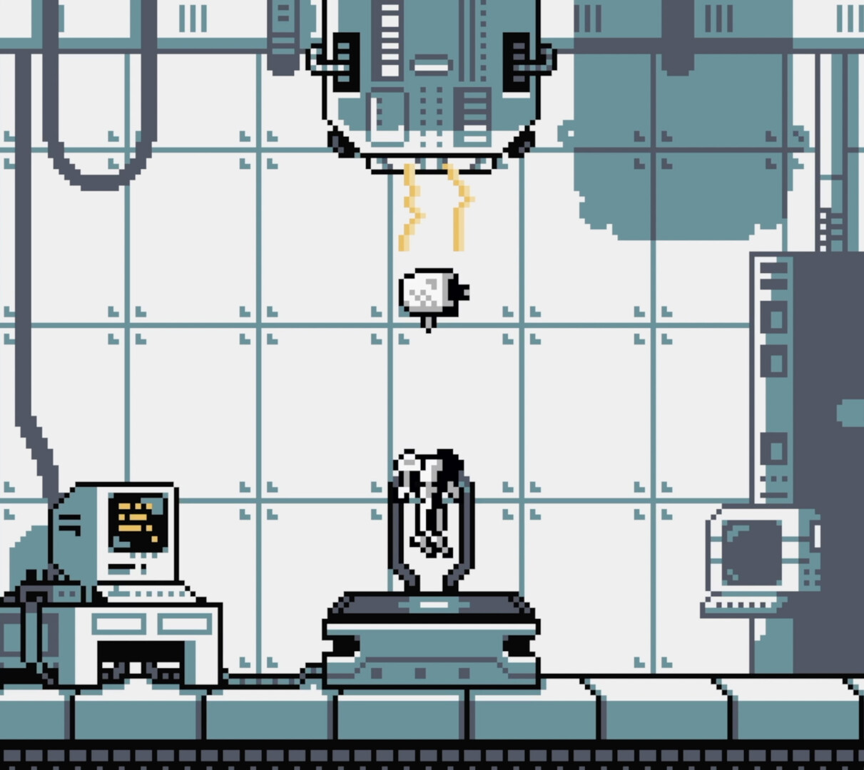 Self Simulated is an all-new action platformer for the Game Boy Color that thrusts you into the shoes of a robot version of yourself, awakening with no memory of your past. Guided by a mysterious voice in your head, you discover that you recently had a severe accident and your mind was transferred into a robot body. Your mission is to synchronize your new body with your mind by navigating through a high-tech facility filled with other robots and tricky obstacles and something that the voice in your head describes as the “glitch”.
