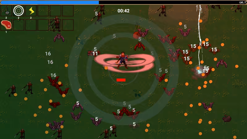 Crimson Loop. Is a 2d Top down, Bloody, hack and slash. With some bullet hell and rouguelike elements, Where you fight wave after wave of monsters to try and survive.