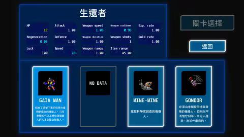 控制各種機器人,消滅來自外太空的入侵者,拯救被毀滅的地球! "GAIA Survivors"是一款具有復古未來主義世界觀的'Shoot 'Em Up'類型科幻 Rogue-lite 休閒遊戲。